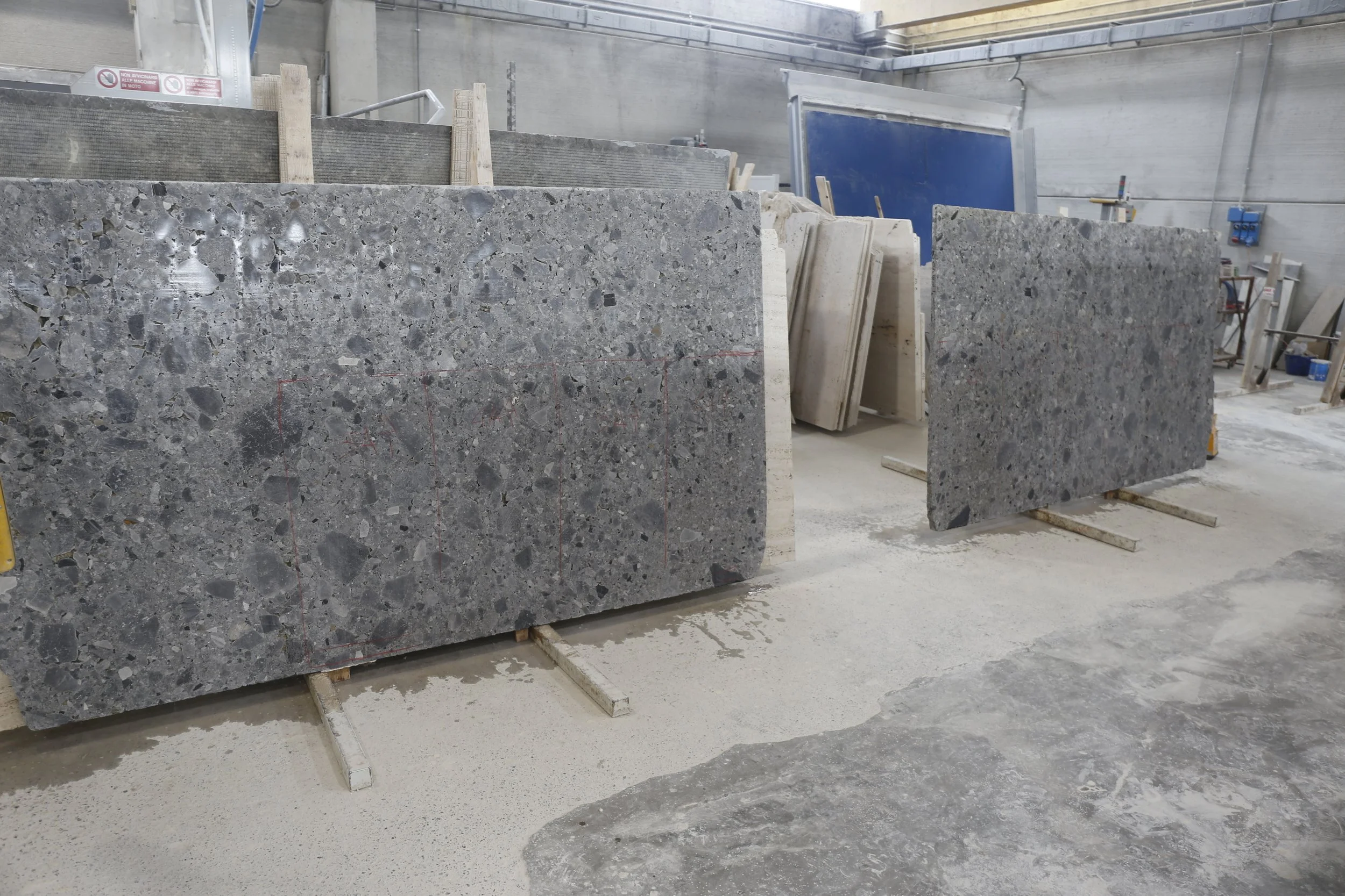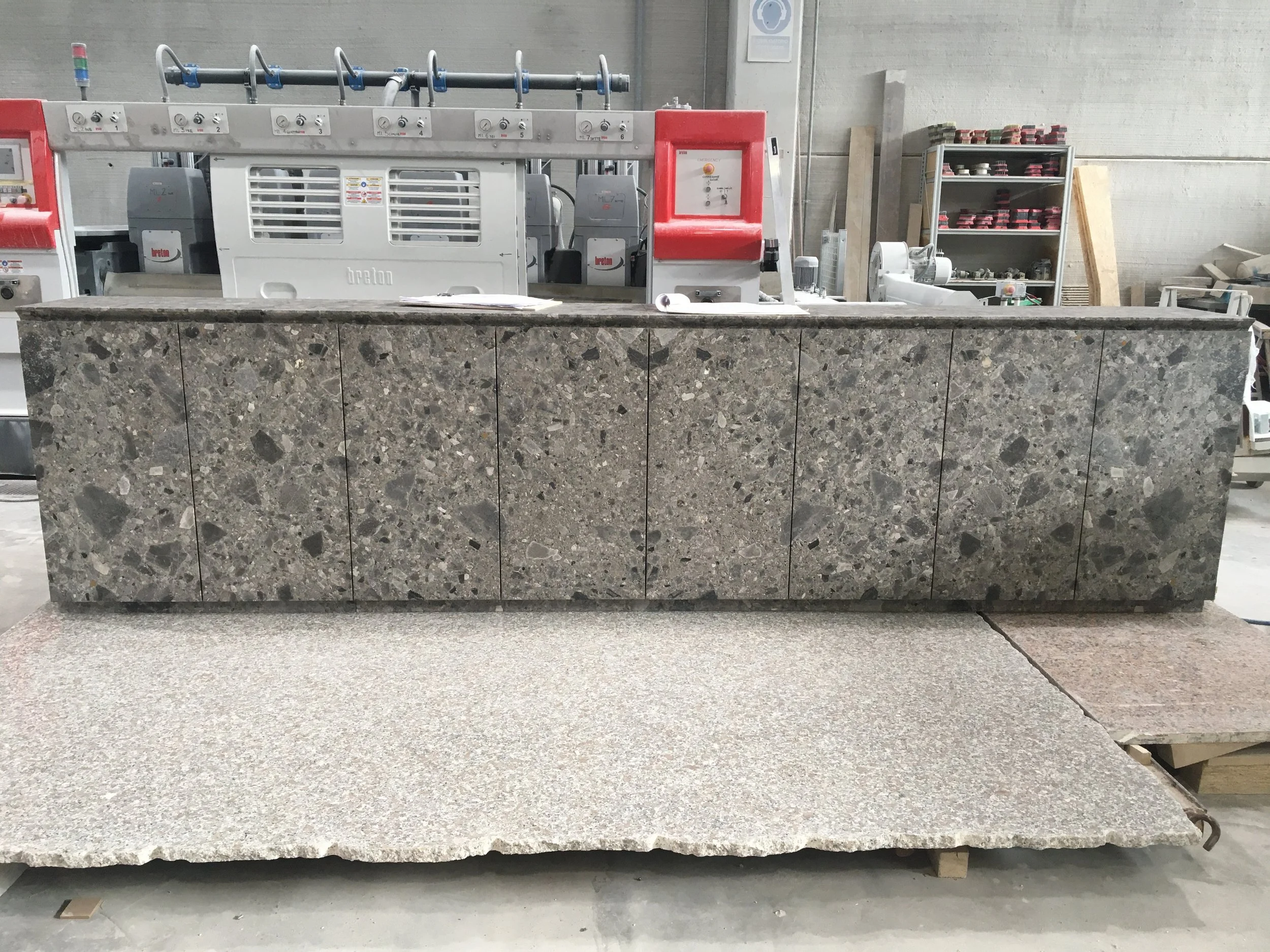 Elementi provided this sleek console in the unique and textured stone, Grigio Montenapoleone, for Roc Nation’s New York office conference room as well.